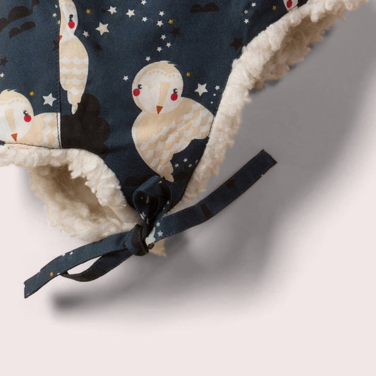 Baby vintermössa 0–6 mån – ekologisk sherpa (öronlappar & knytband) | Little Green Radicals