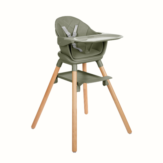 Barn Matstol i trä 2-i-1 – KikkaBoo Woody | justerbar bricka, 5-punktssele