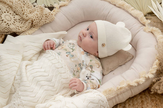 Babynest nyfödd – AINA Boho i ekologisk bomull (Butter/Beige) 90x55