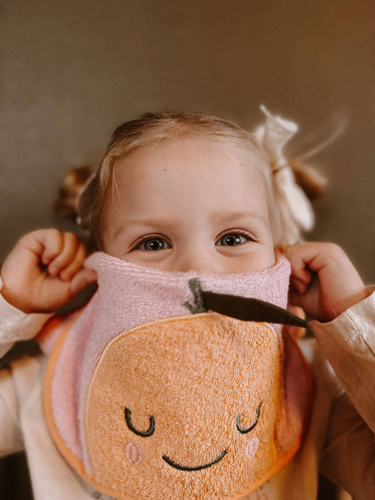 Babyhaklapp i frotté – Mandy Mandarine från The Cotton Cloud