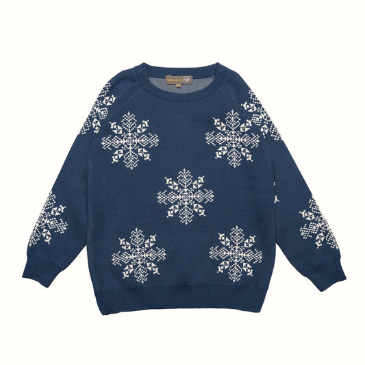 Jultröja Barn – Snöflingor i Blå | Ekologisk Stickad Tröja från Köpenhamn