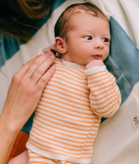 Nyföddset i Ekologisk Bomull – Randig Jacquard (Jacka & Byxa) | 0–1 M & 3–6 M | Tillverkad i Barcelona