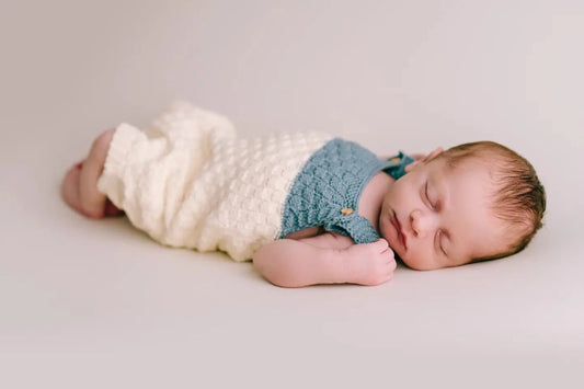 Newborn First Romper i ekologisk bomull - Bara blå färg, storlek 0-3 månader, tillverkad i Barcelona