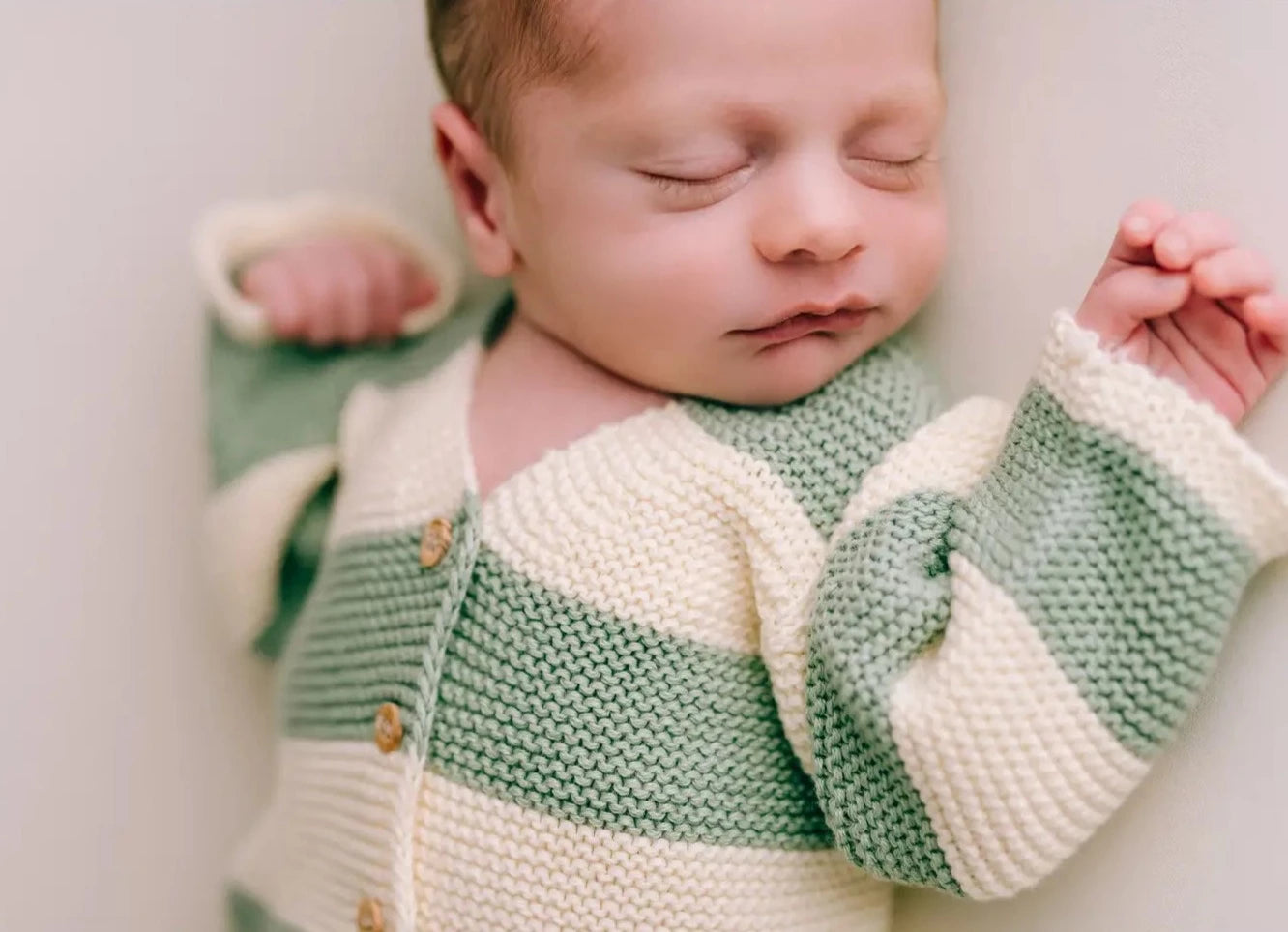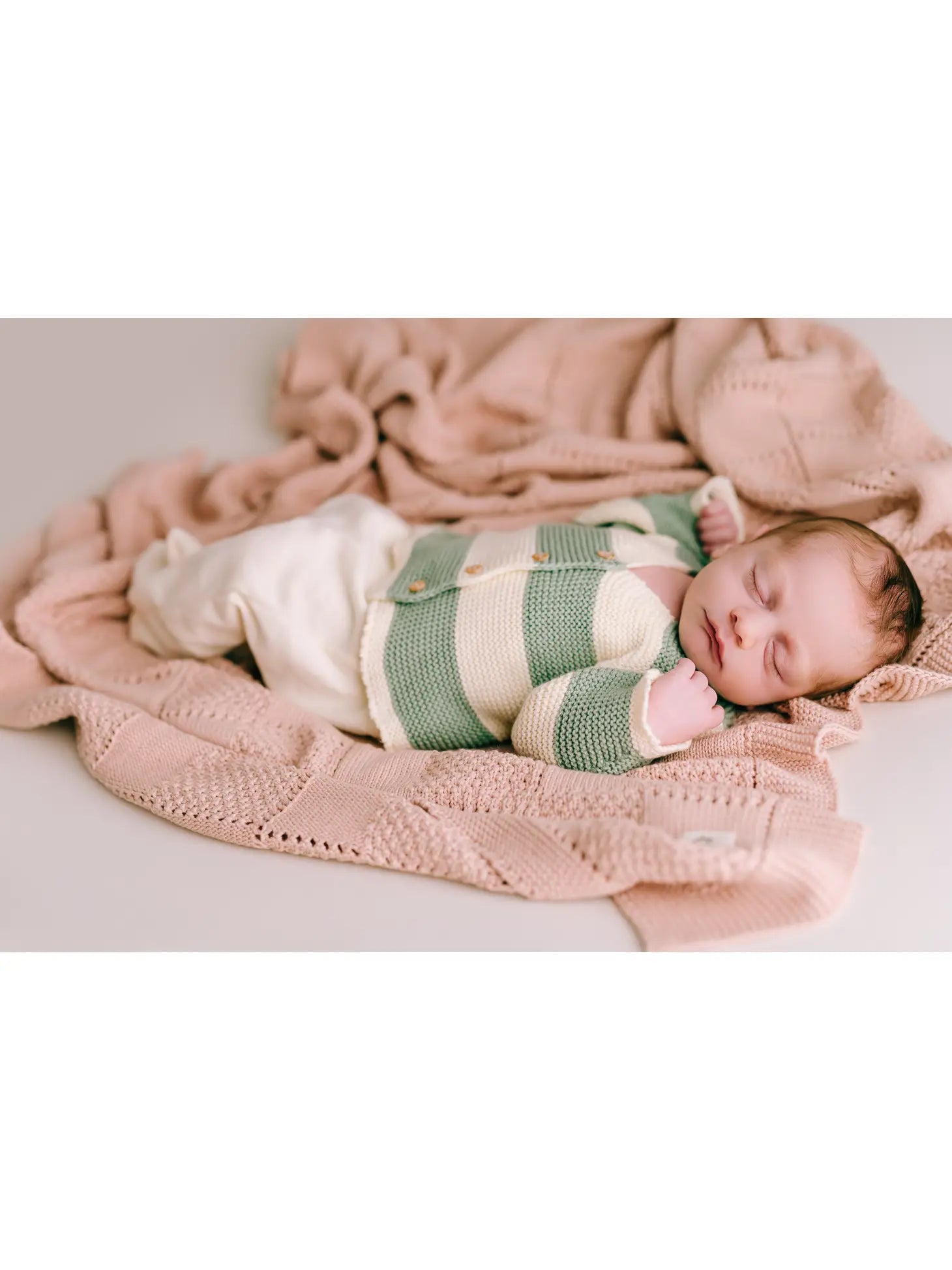Newborn Cardigan Links Mint-Ecru - Organic Cotton, Knitted Jacket with Olive Buttons