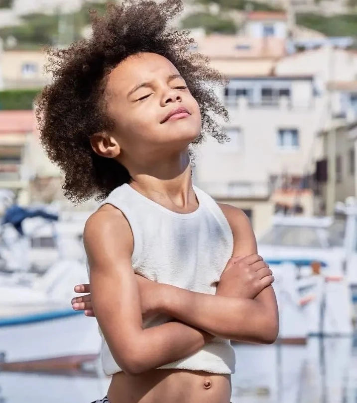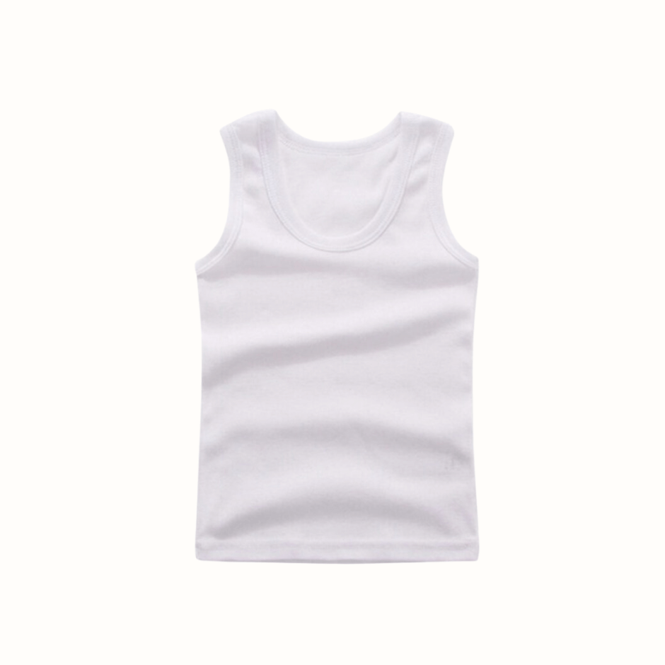 Update your little trendsetter's wardrobe with this baby and young girl tank top in white. Our basic and minimalist tank top is made of soft cotton that provides ultimate comfort during hot summer days or as a base for fall clothes. The pure white color gives a fresh and timeless look that can be combined with various clothing items and accessories. With its simple design, this tank top is a versatile and practical piece of clothing suitable for all occasions. Made with care and quality to ensure long lasting durability. Give your little fashionista a stylish and comfortable summer style with this versatile and timeless white tank top.