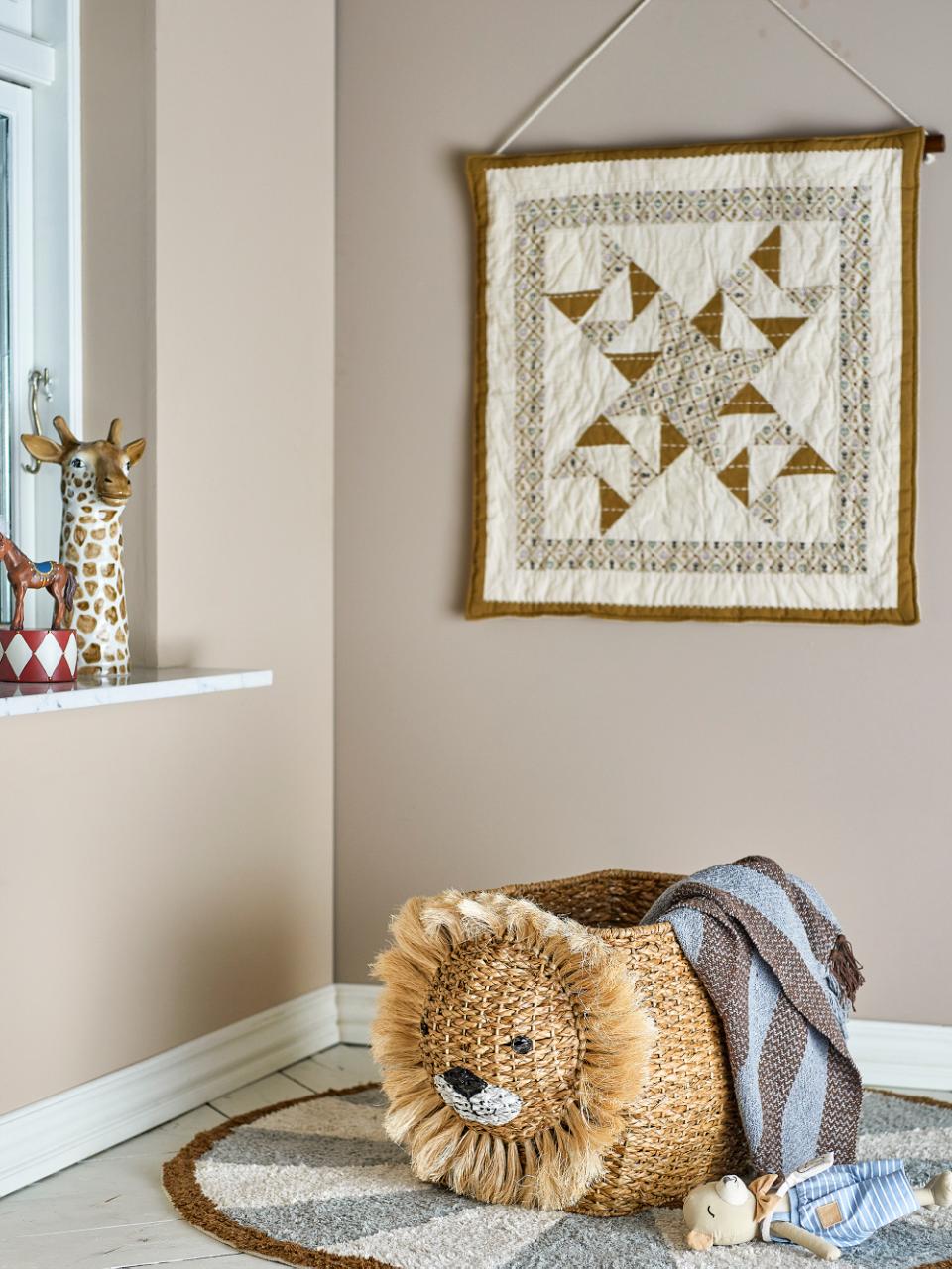 Harrison är perfekt för förvaring av allt från leksaker, mjukisdjur och böcker till filtar och kläder — eller varför inte som tvättkorg vid sidan av sängen. Den naturliga vävda strukturen skapar en varm och lugn atmosfär i ett barnrum, vardagsrum eller sovrum, och lejonhuvudet ger en fantasifull touch som barn älskar.