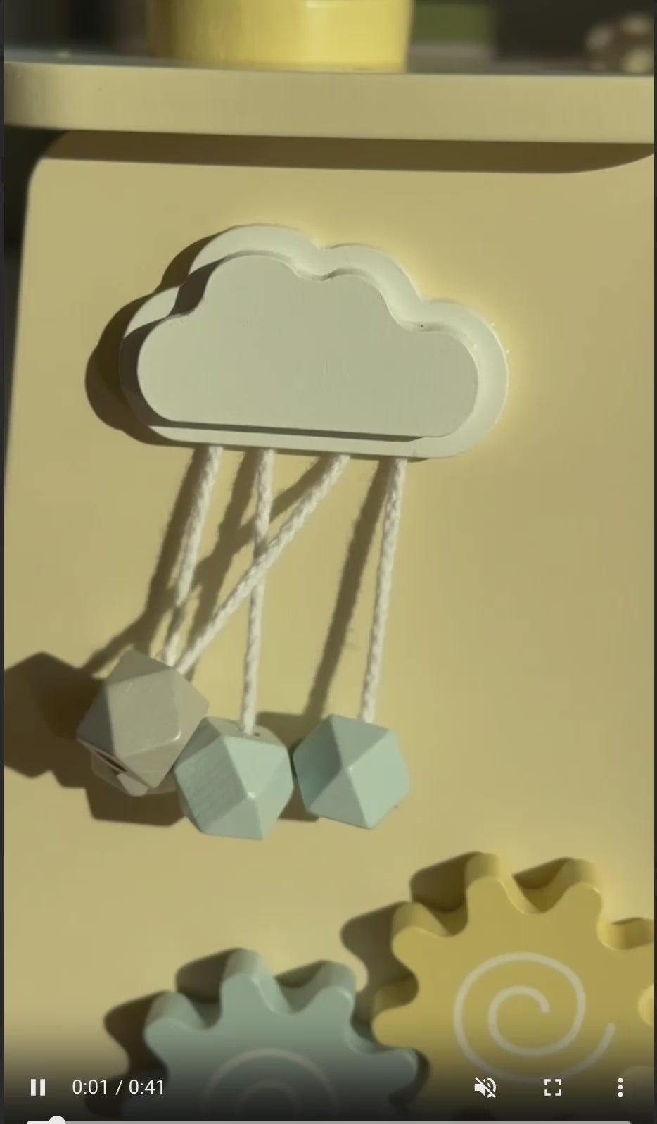 Aktivitetscenter: dragkedja, pärl-/kulbana, kugghjul, roterande hjul, telefon, snör-/knappbräda, tallrik & sked, “flaska”.