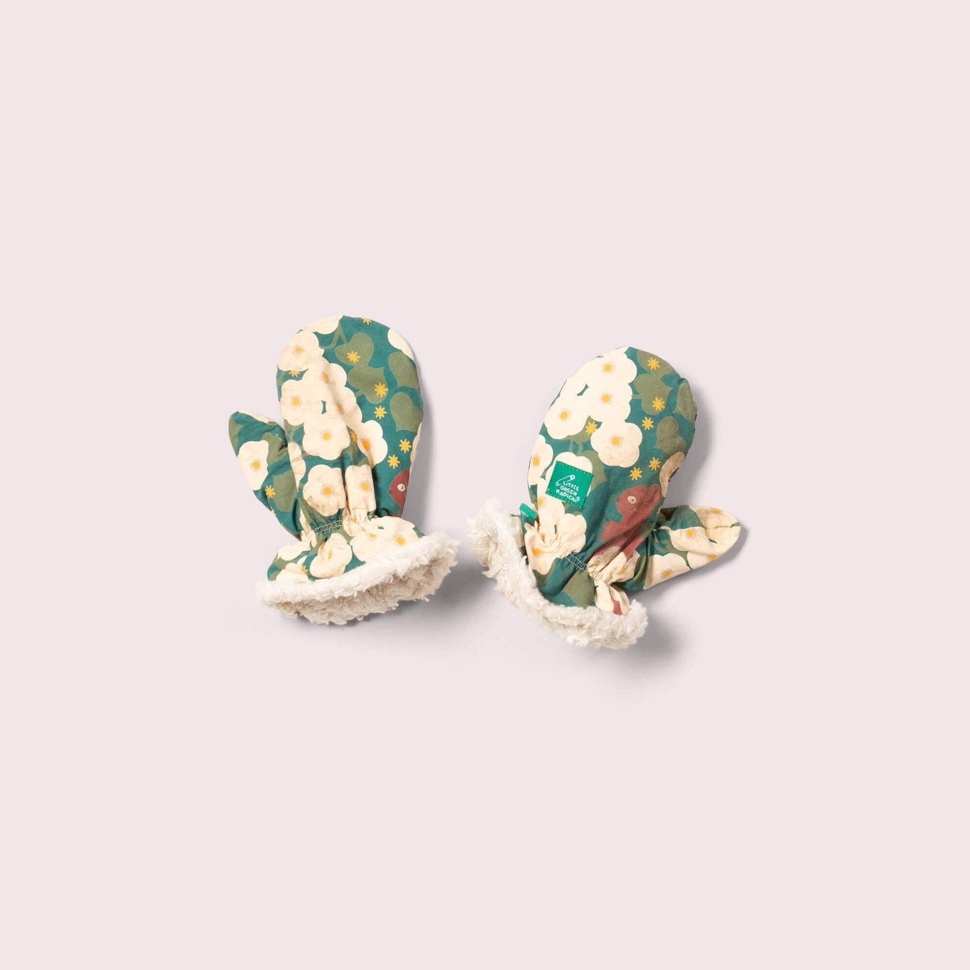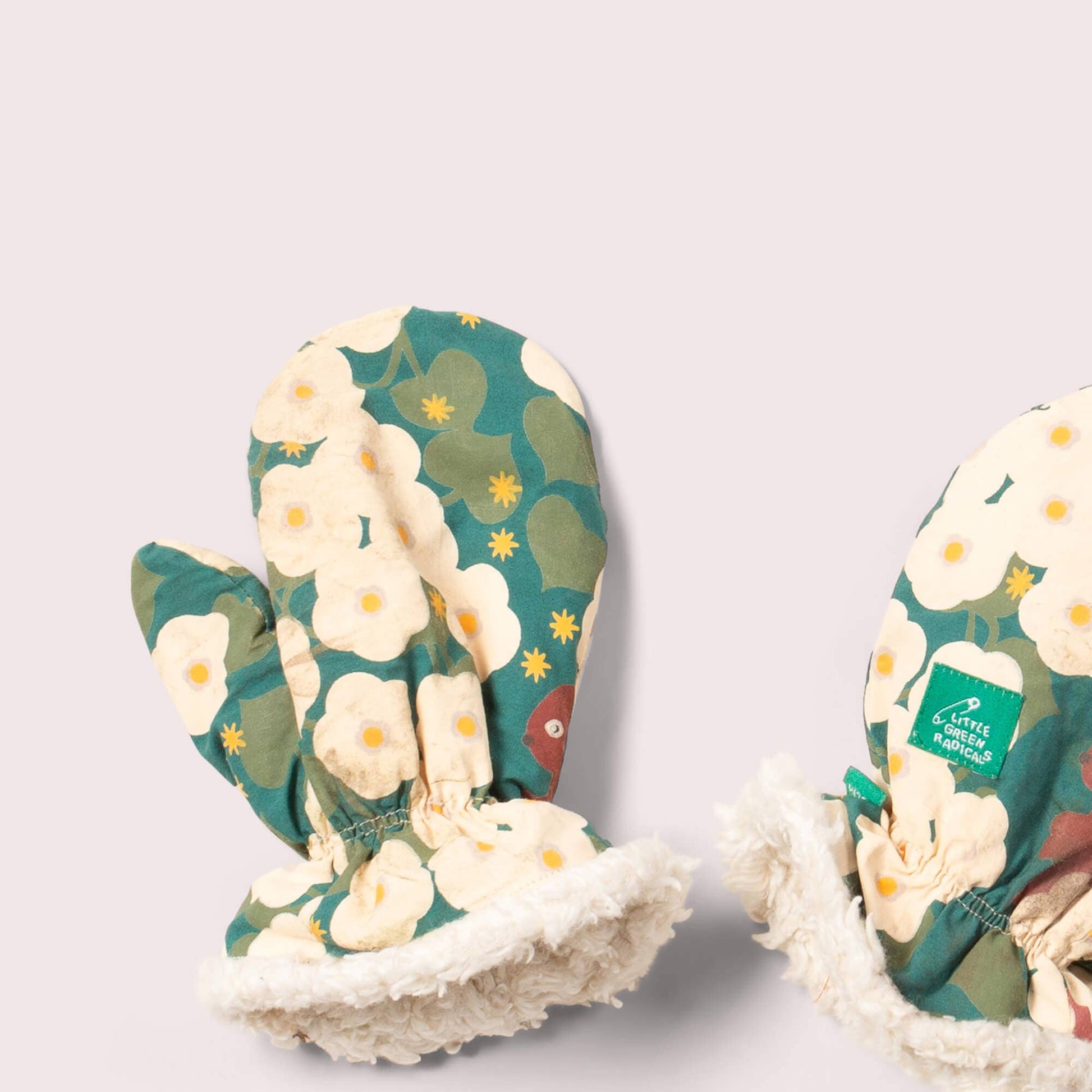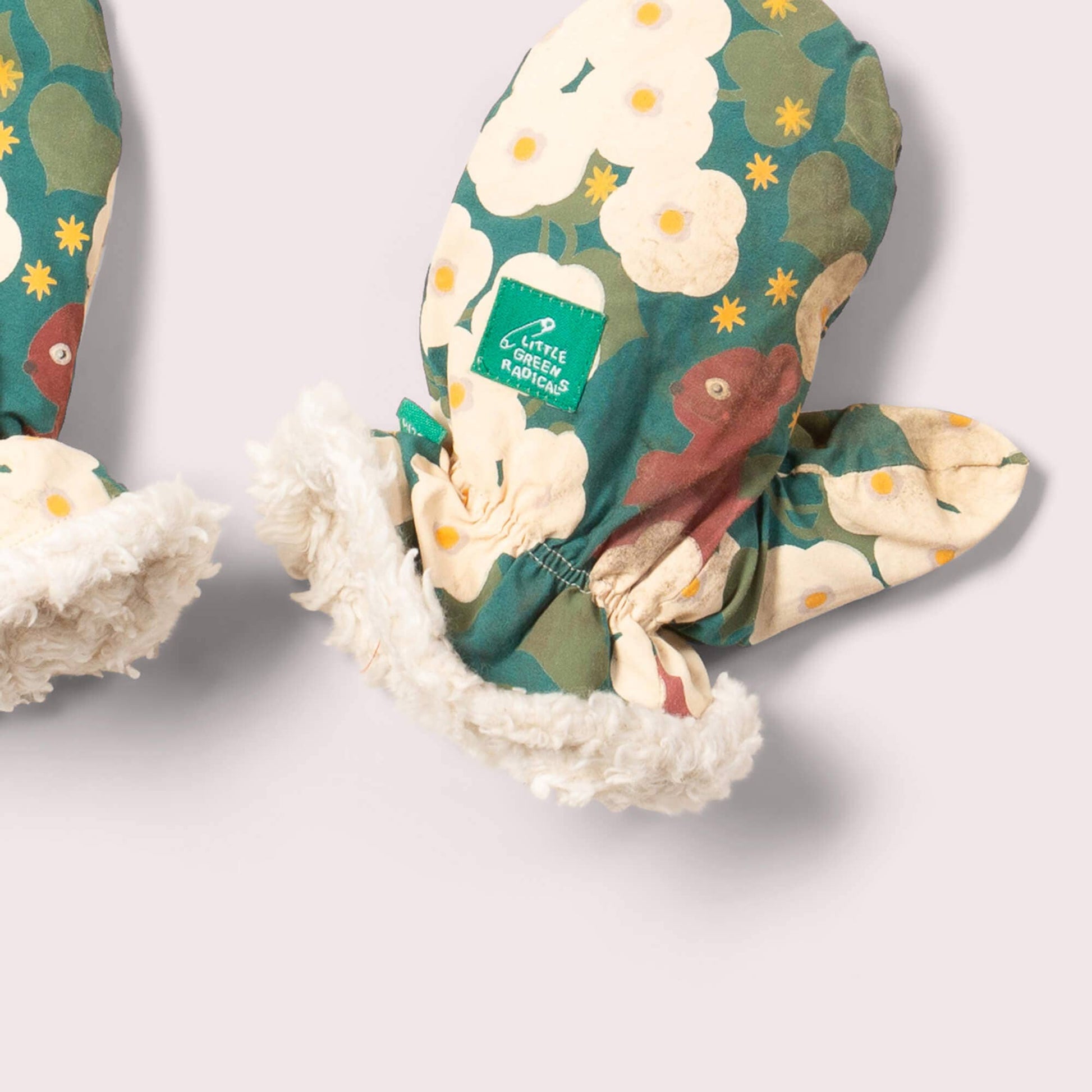 Håll små händer riktigt varma i vinter med Hedgerow Sherpa Lined Mittens från Little Green Radicals – mjuka och ekologiska sherpa-vantar för nyfödda och bebisar 0–6 månader.