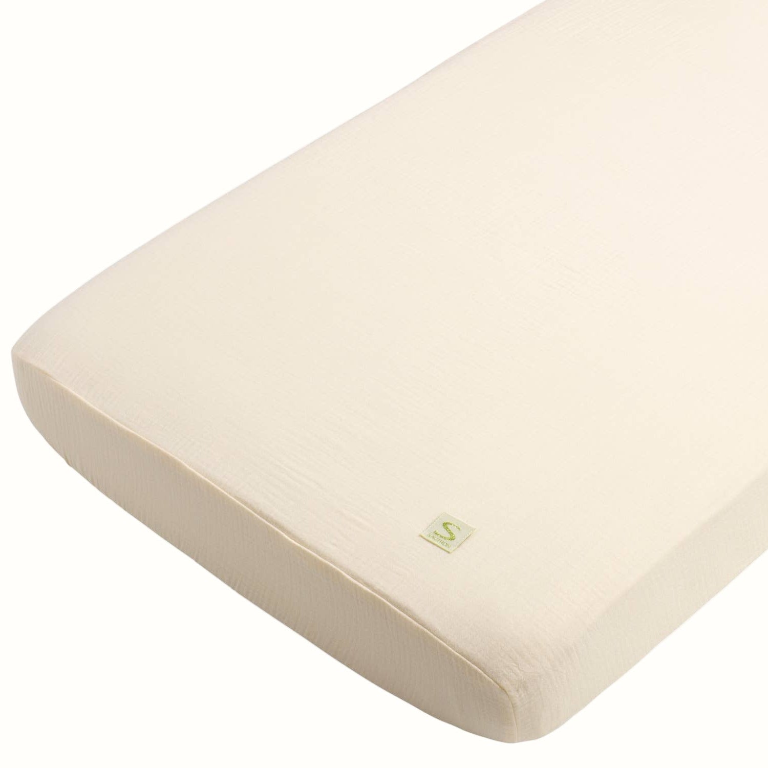 Ge din baby en mjuk, trygg och sval nattsömn med UNI Vanilla dra-på-lakan från Sauthon, tillverkat i 100% ekologisk bomullsmuslin.
