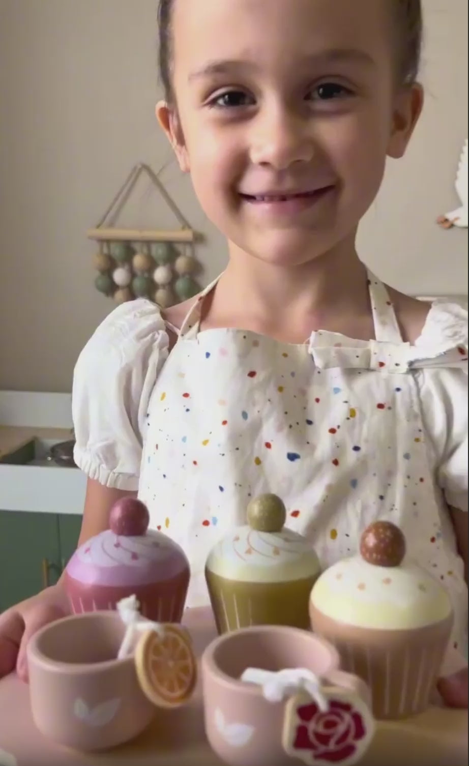 Vintage Green är en kompakt barnspis med spishäll ovanpå och ugn med fönster i dörren – perfekt för rollekar i köket. Vreden ger realistisk känsla och den utdragbara hyllan/bakplåten gör det lätt att “grädda” kakor. Paketet innehåller dessutom 3 cupcake-formar för extra lekmoment. Färgen är en sober vintagegrön (Pantone 4223C), lätt att kombinera med övrig inredning. Rekommenderad ålder: 3+.