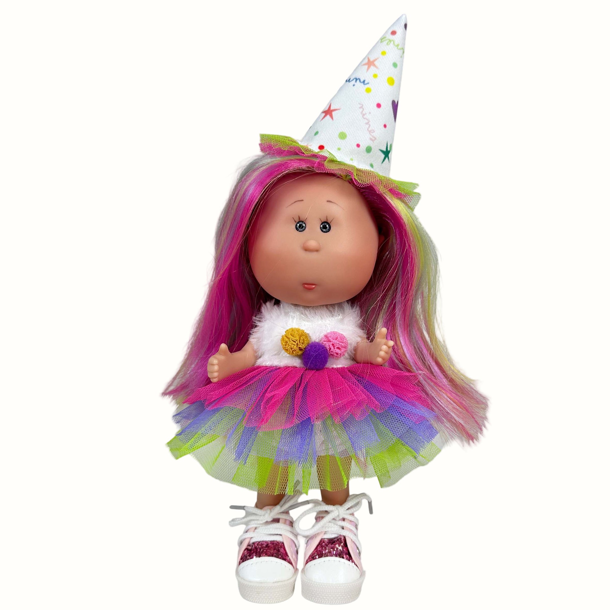 Fira med lek! Little MIA Happy Birthday är en 23 cm vinyldocka som tål bad & vattenlek. Handgjord i Spanien med silkeslent hår och en festlig födelsedagslook – perfekt present och lätt att ta med överallt.