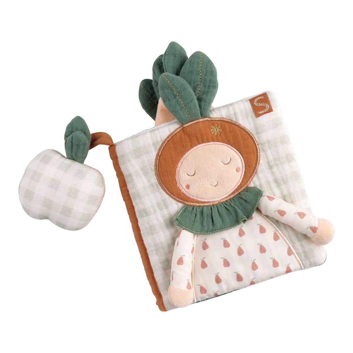 En mjuk tygbok i harmoniska Botanica-färger med sensoriska och auditiva effekter som väcker bebisens nyfikenhet under vakna stunder. Taktil, trygg och vacker – perfekt i vagnen, på filten eller i babynestet.