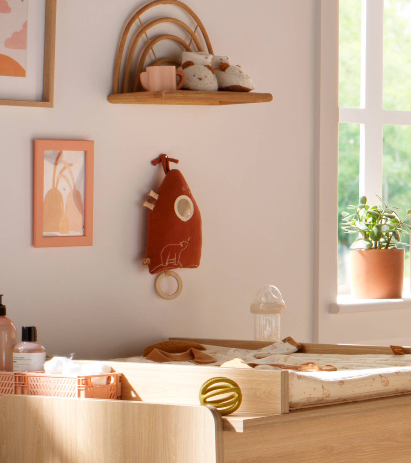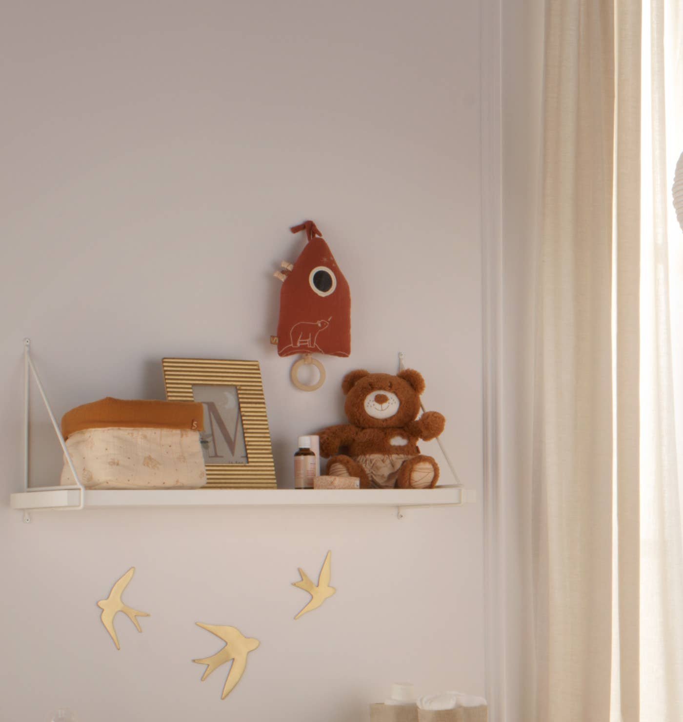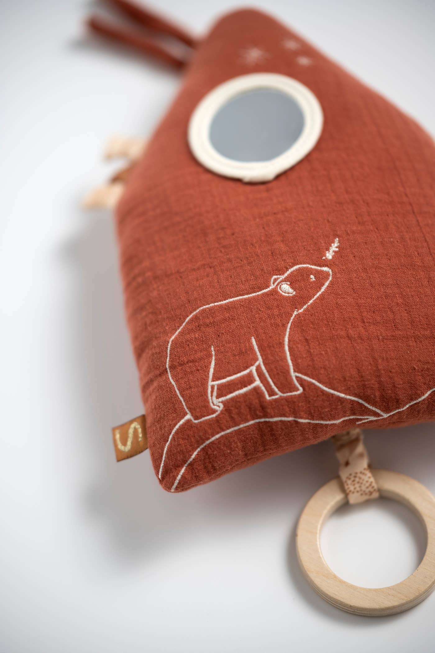 Tillverkad i twilltyg och dubbel bomullsgas, vilket ger en mjuk, behaglig struktur som känns trygg mot huden. En klassisk speldosa och dekoration i ett, perfekt för att skapa en rofylld sovmiljö.