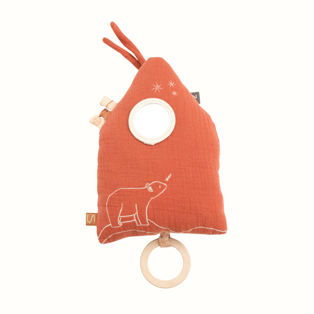 Låt din bebis somna till mjuka toner med Sauthon Orsino Broderat Hus, en musikalisk tygleksak i dubbelt bomullstyg med terrakottafärgade detaljer från Orsino-kollektionen. Den är mjuk, trygg och vackert broderad, skapad för att ge både lugn och trygghet vid läggdags.