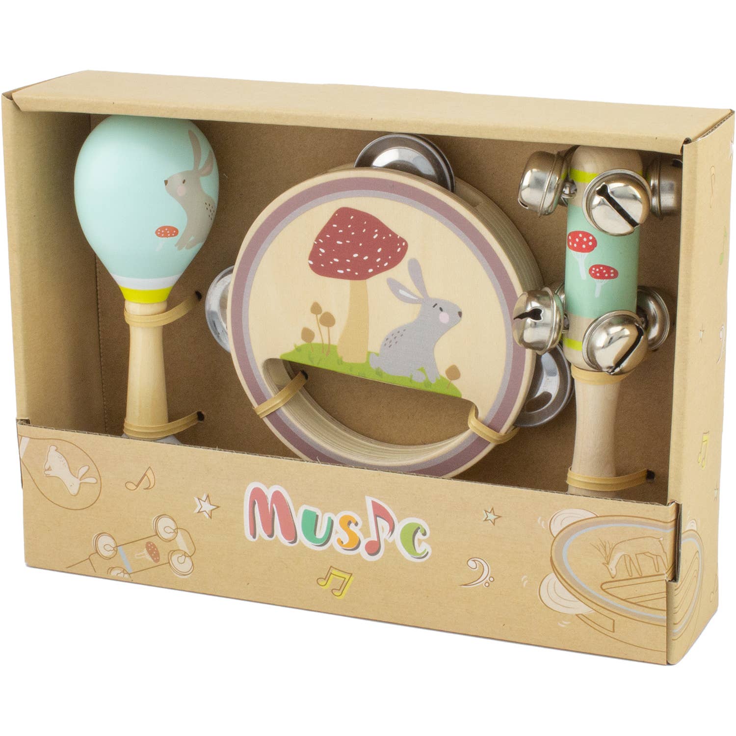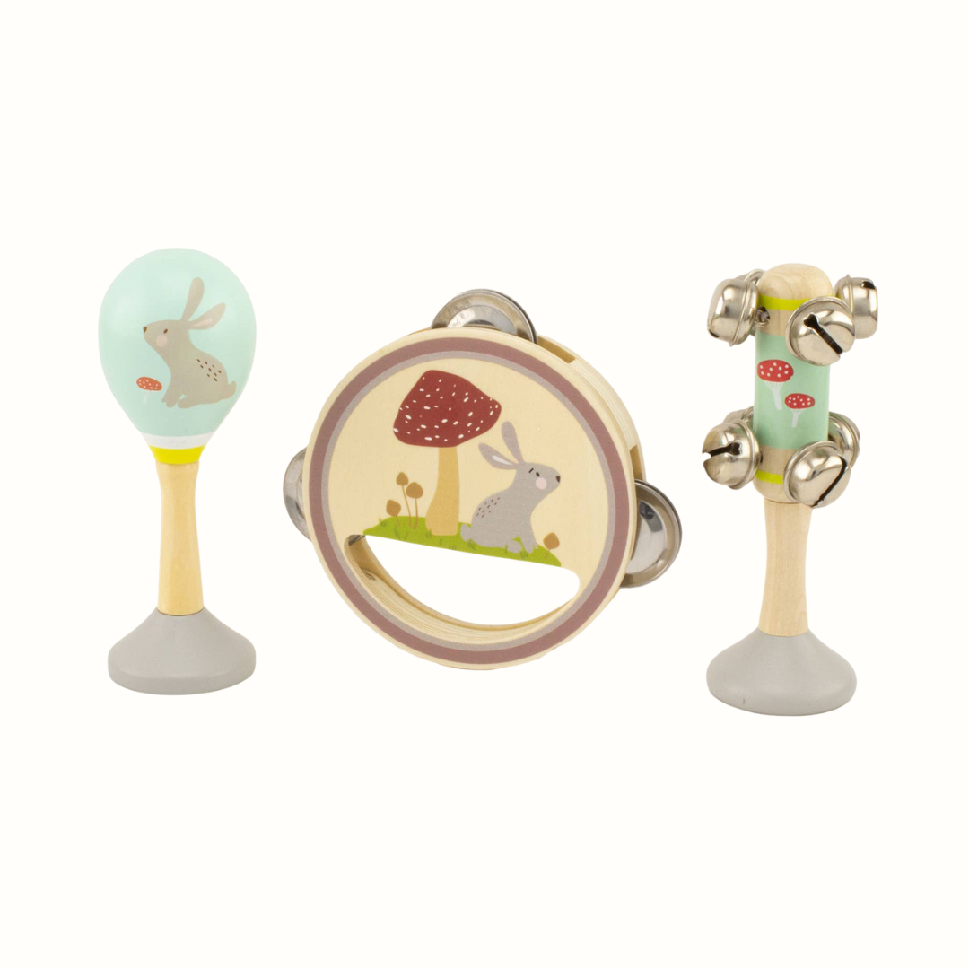 Musikset i trä för barn – Kanin | Tamburin, maracas & skallra