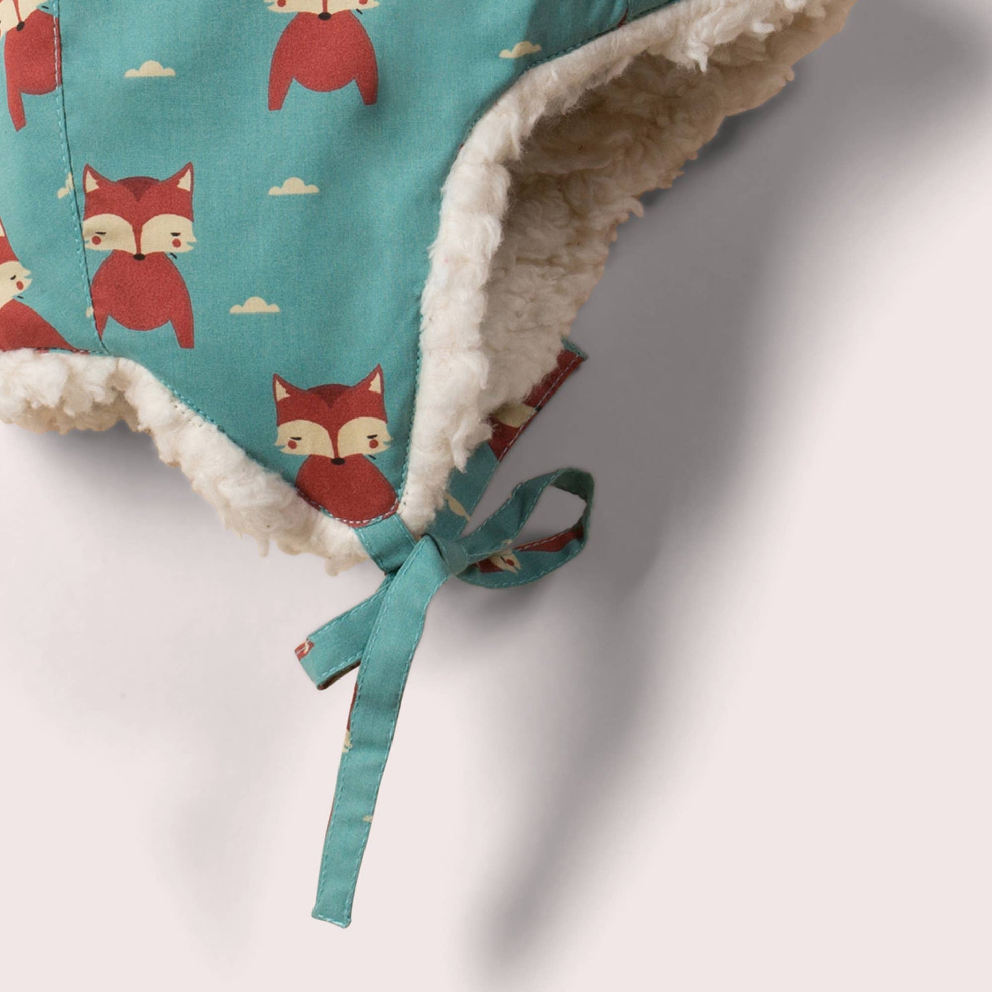 Håll små öron varma i vinter med Night Time Foxes Sherpa Hat från Little Green Radicals – en extra mjuk och ekologisk vintermössa med perfekt passform för aktiva små barn.