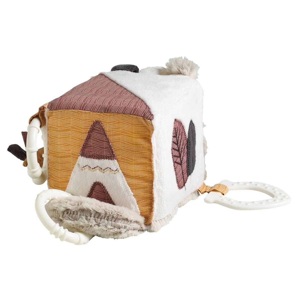 Aktivitetskub – Lägerbjörn (9×9×9 cm), mjuk & taktil | Sauthon