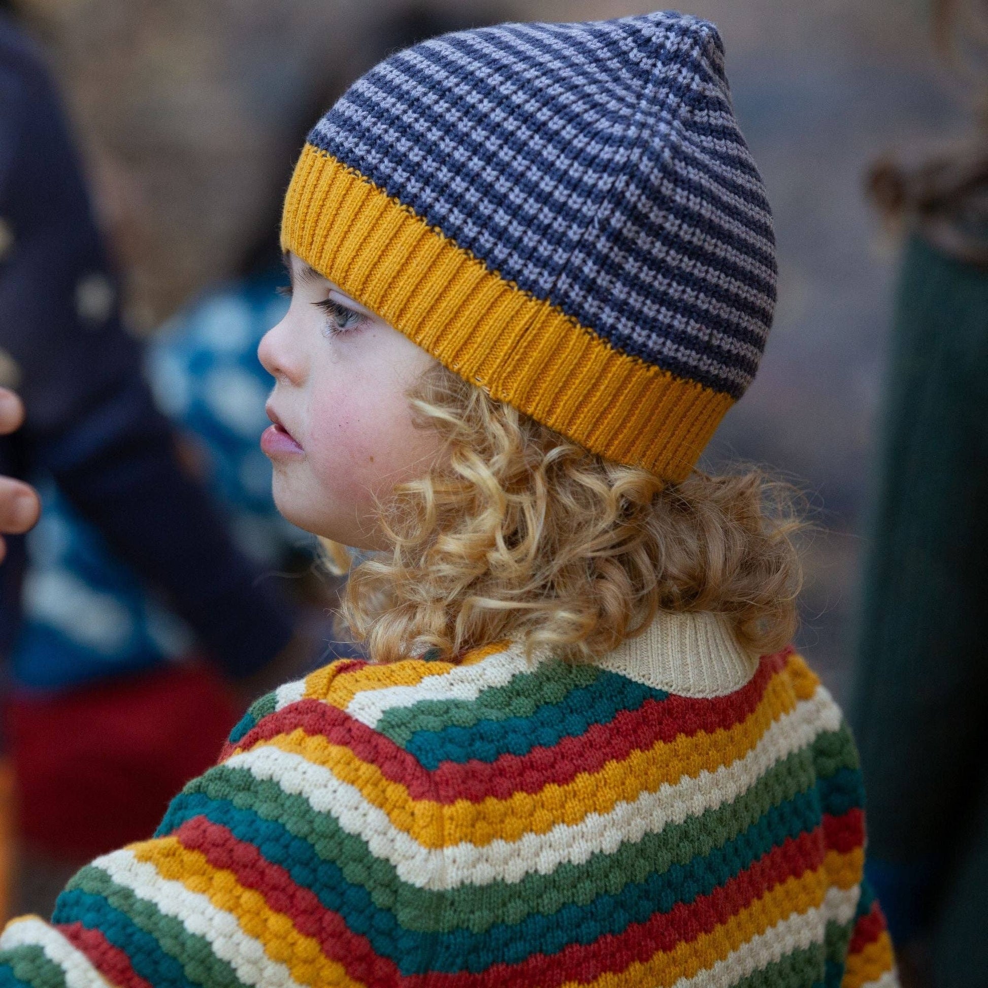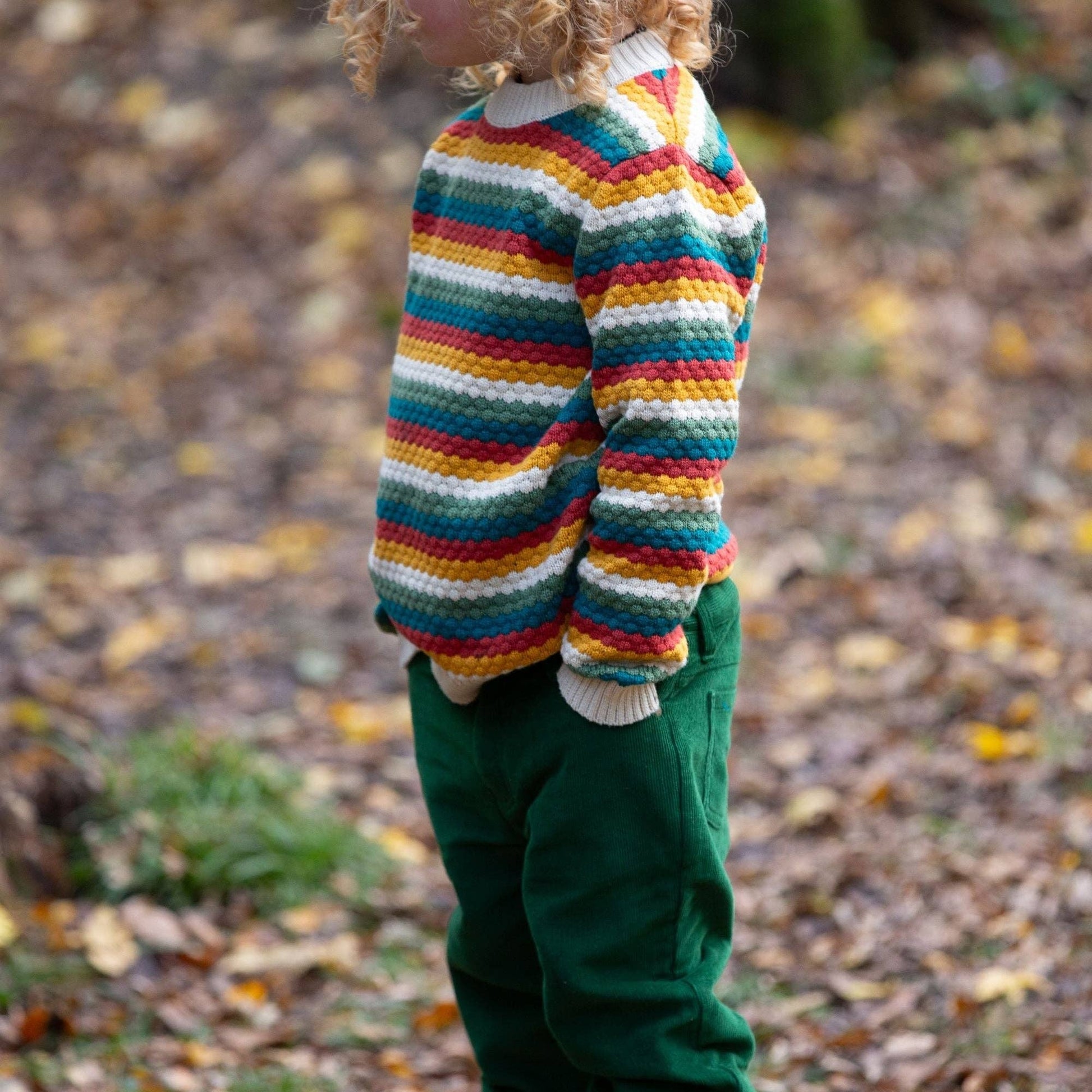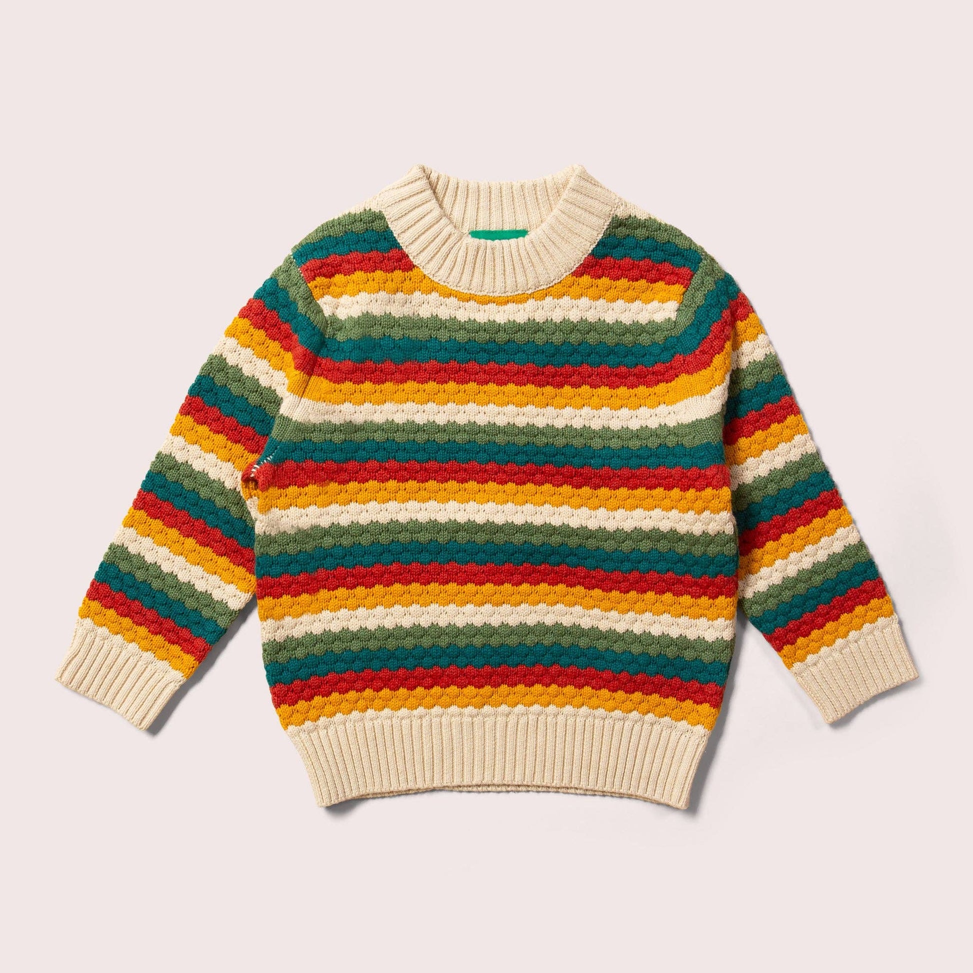Stickad tröja barn – Honeycomb Rainbow (ekologisk bomull) | Little Green Radicals