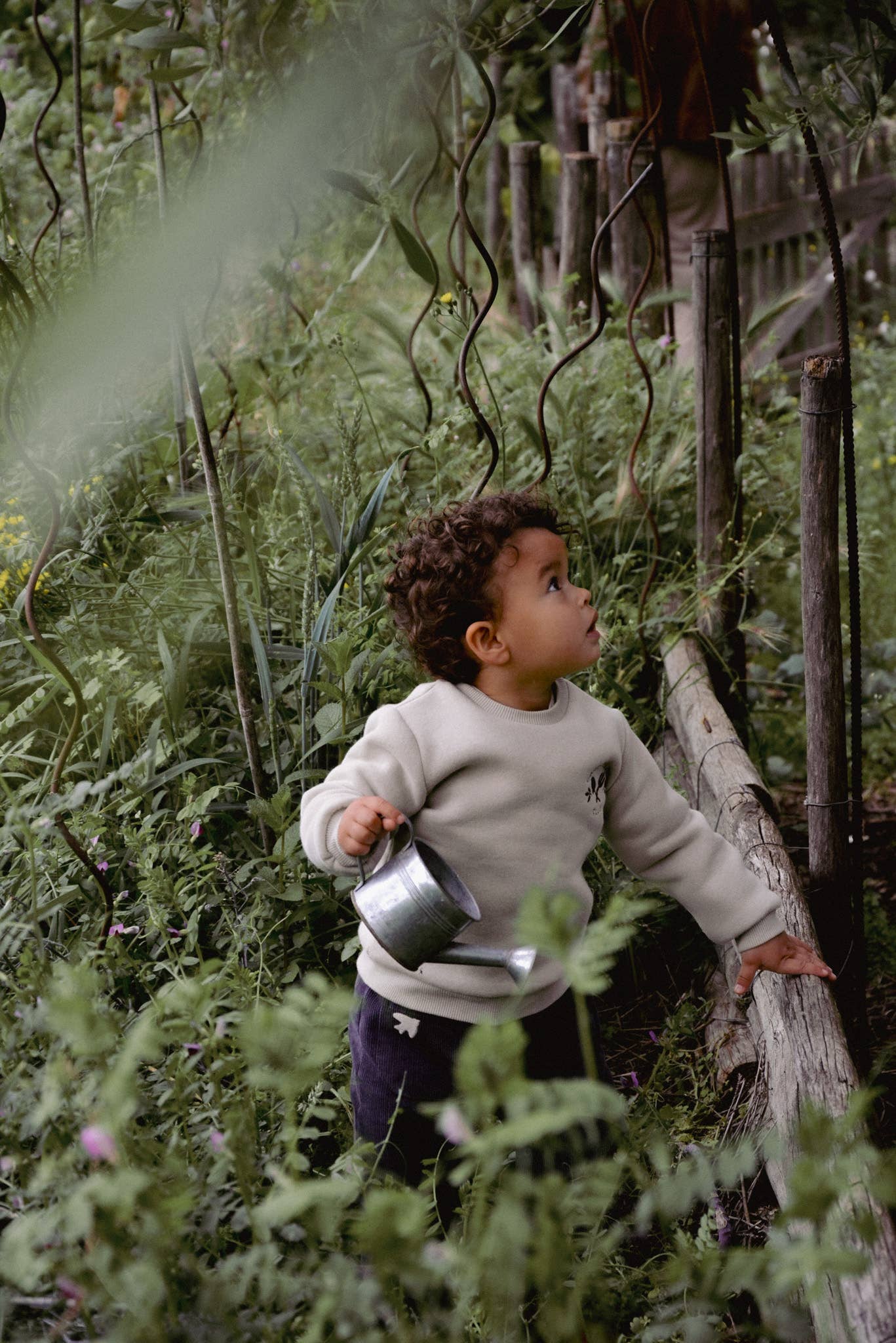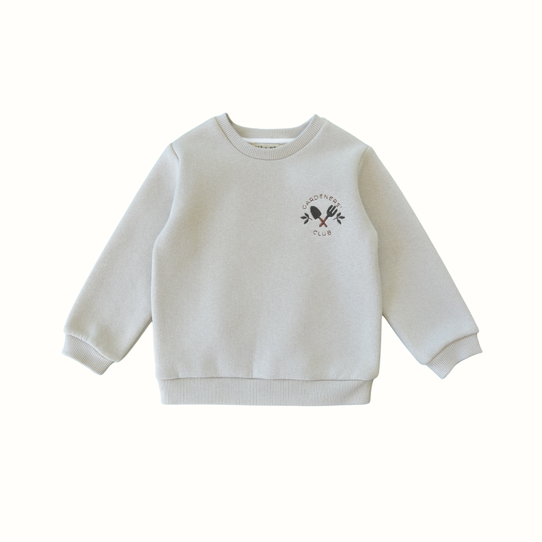 Sweatshirt för baby & barn – Gardener’s Club-broderi i ljus beige bomull